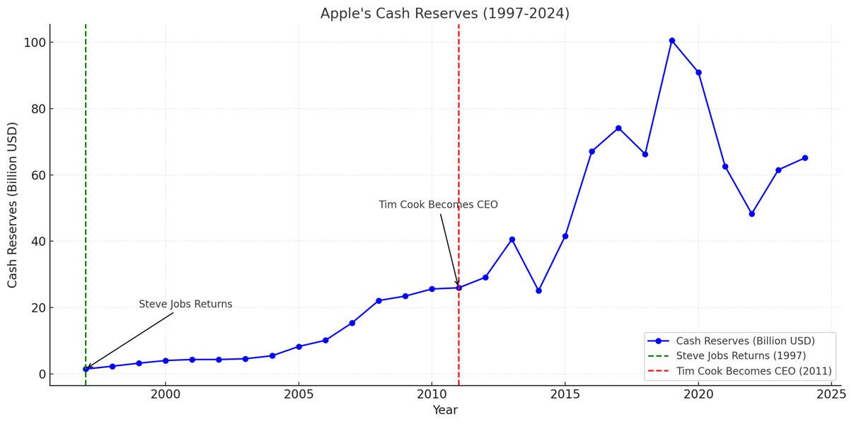 An expert in supply chain management and operational efficiency, he took a very valuable company to extraordinary heights. This largely through production optimization, negotiating incredible deals with suppliers (primarily Foxconn, and AppStore developers) and financial engineering practices that gave Apple the largest cash pile in the history of the world.