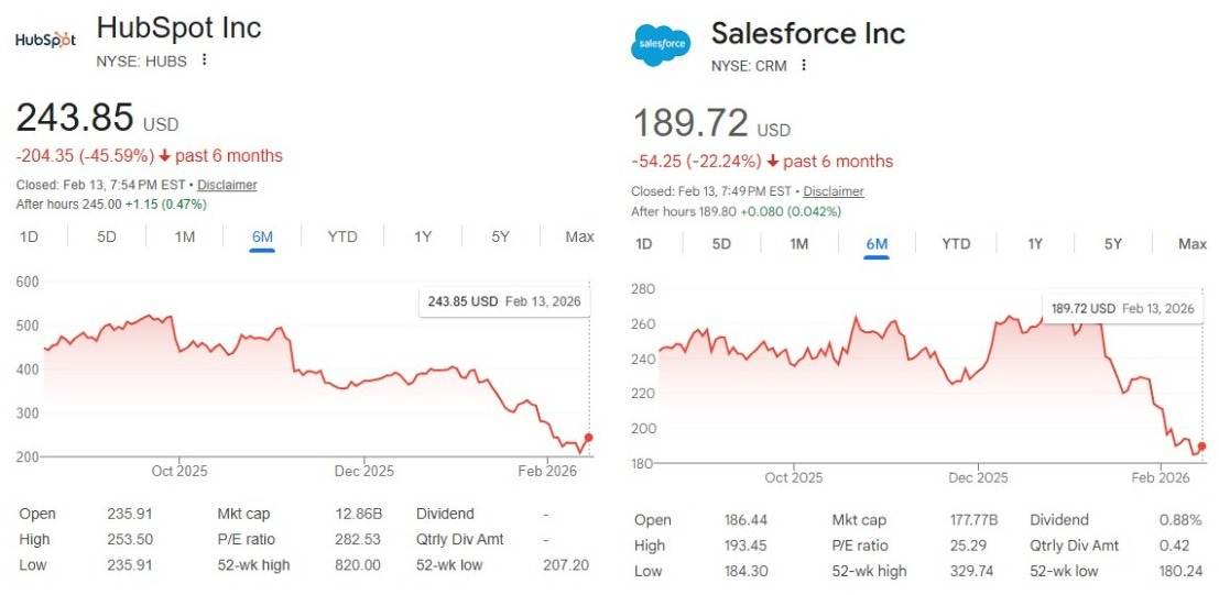 From there it was an easy leap to a broader conclusion: if Claude can do this for legal workflows, what else can it replace? ServiceNow, Salesforce, HubSpot, etc. were all suddenly vulnerable.